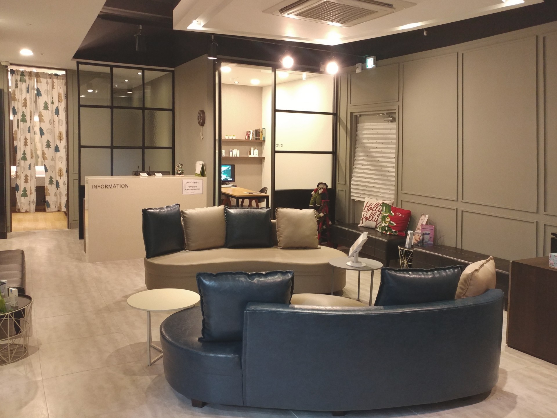 이번 프로젝트는 신뢰를 담아내는 공간으로 연출하는데 집중하였습니다. 그린 빛도는 그레이컬러로 친근함을 주고, 블랙 컬러로 전체적인 공간에 힘을 실어 신뢰감있는 공간으로 디자인하였습니다.